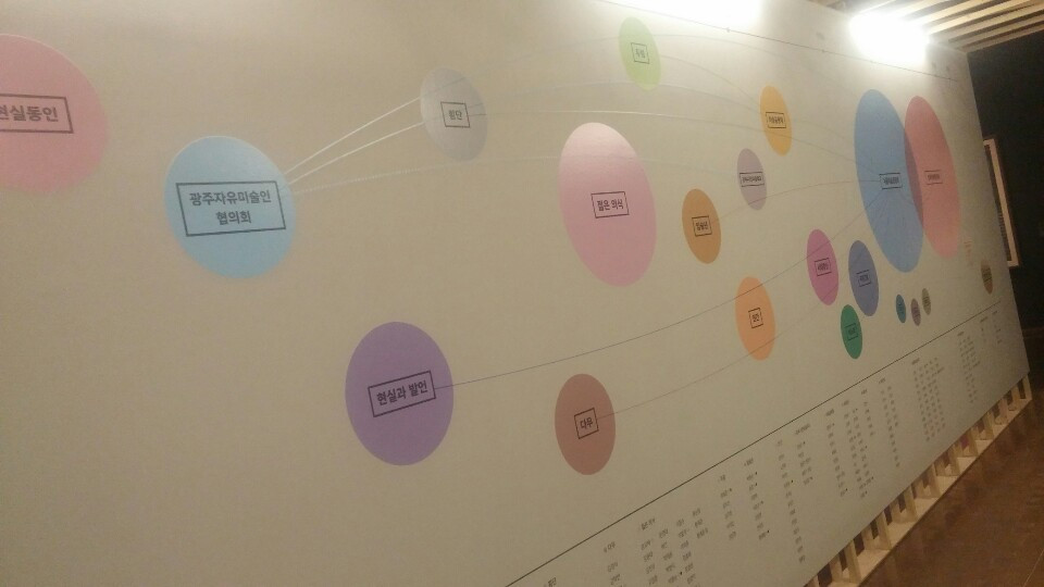 전시장 입구의 소개글에 따르면, 이호재 대표는 "80년대 시대의 복판을 살아가는 미술인 한 사람에게 주어진 당연한 책무"로서 리얼리즘 계열의 작품을 지원했다고 한다.