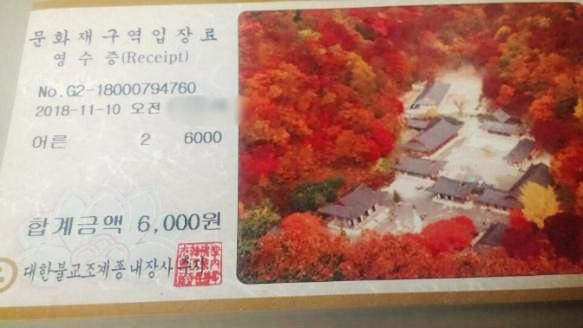 내장산에 들어가려면 입장료 3000원을 내야한다. 명목은 문화재구역(내장사)입장료. 현금만 사용할 수 있다.매표소부터 내장사 입구에 이르는 길은 단풍 터널로 매우 유명하다고 하는데,
