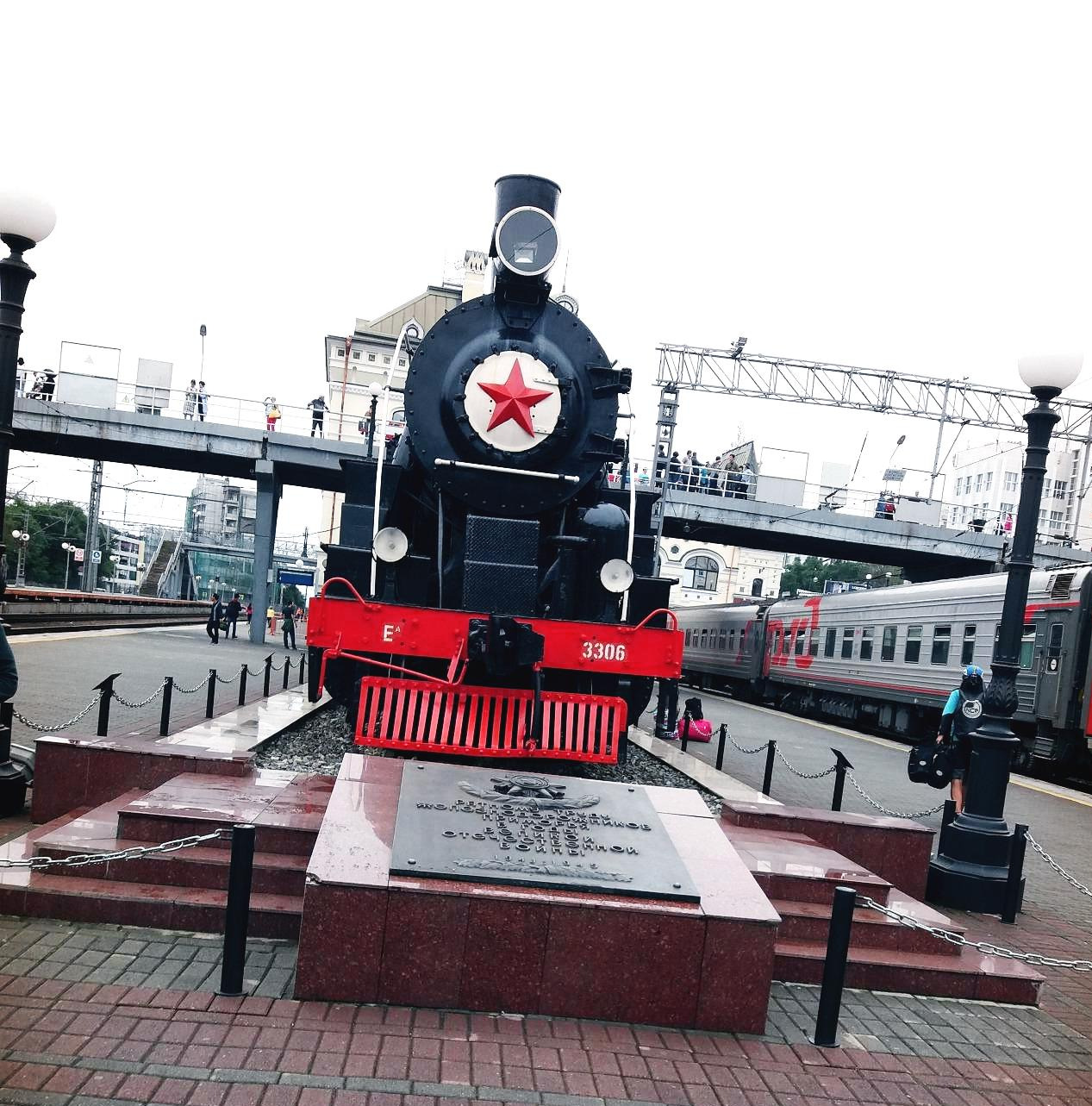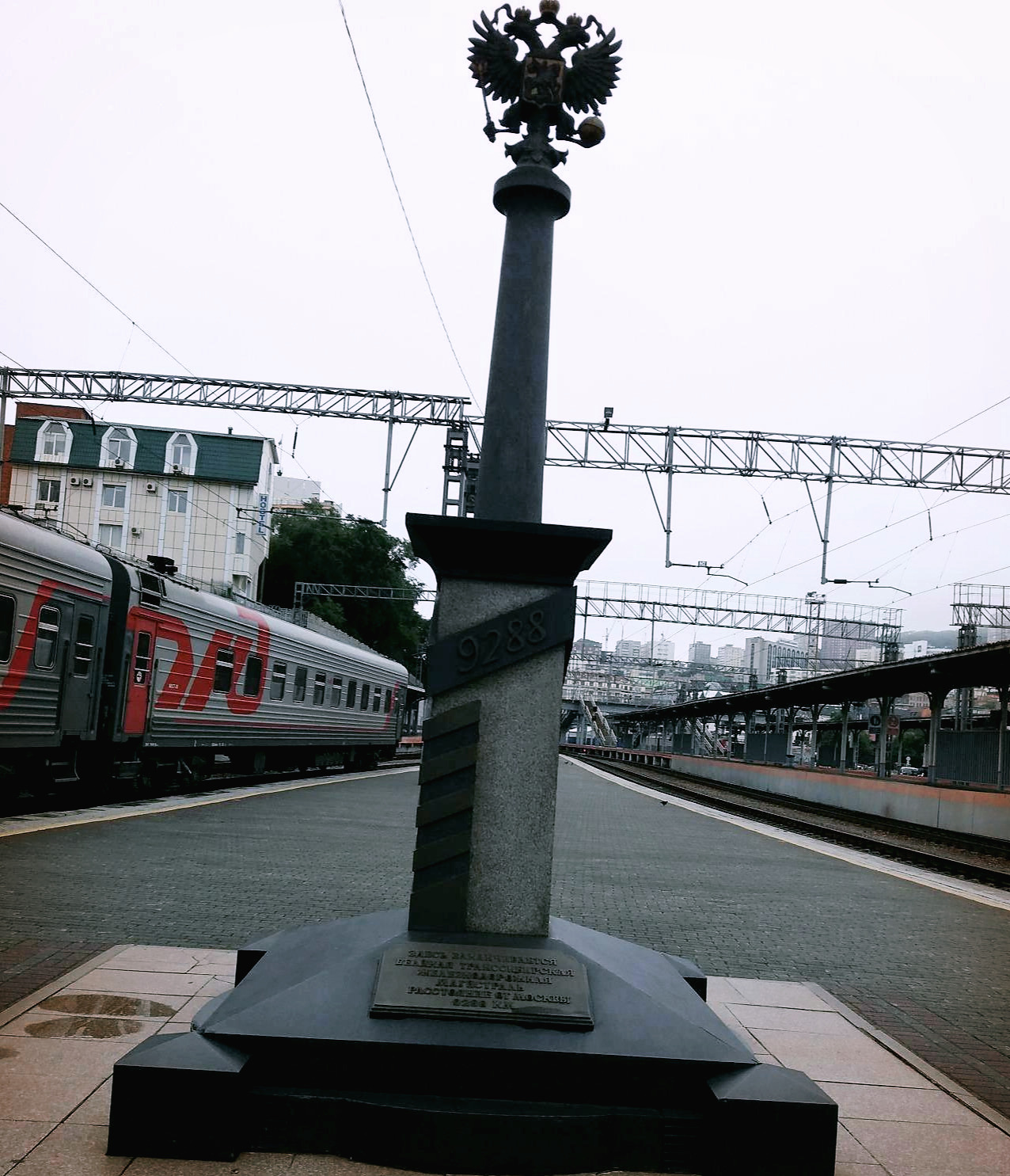 열차에서 내리니 블라디보스톡역의 시베리아 횡단열차 기념탑과 조형물이 보였다.