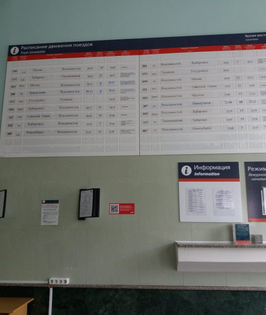 우수리스크에 가기 하루 전날, 블라디보스토크 역 왼편에 있는 공항 철도역 창구에서 직원에게