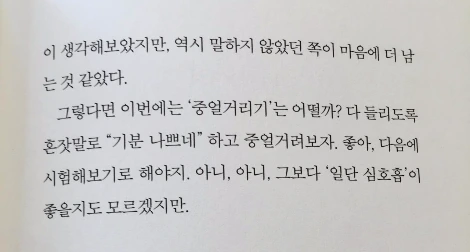 이런저런 방법으로 다음에는 다르게 말해보려는 새로운 다짐을 하는 모습도 있습니다.