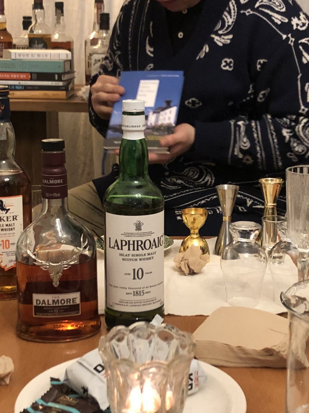 모임에 모인 분들은 호스트님을 포함해 6명이었다. 간단한 자기소개를 했는데, 나이도 전공도 하는 일도 모두 다른 사람들이 모여있다는 점이 재밌었다. 그리고 본격 시음회가 시작됐다. 물론 술에 굉장히 해박한 지식을 소유하신 호스트님의 설명과 함께. 위스키뿐만 아니라 술 전반에 대해 아주 잘 알고 계신 점이 인상적이었다. 이런 분이야말로 술을 사랑하는 사람이라고 말할 수 일을 것 같다. 나처럼 무작정 마시기만 하는 사람 말고.