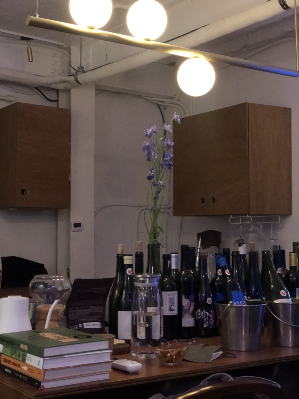 역시나 와인바답게 와인병들을 활용해 인테리어를 해 두셨다. 빈티지 라벨들이 붙어있는 와인들이 즐비하게 늘어서있는 공간을 보면 이 중에서 어떤 와인을 가장 좋아하시는지, 호스트님의 취향을 묻고 싶어지기도 했다.