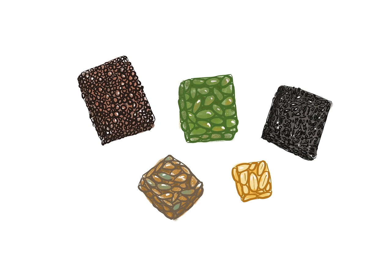 커다란 판대기 엿을 녹여서, 기르고 수확한 깨, 콩, 땅콩등을
