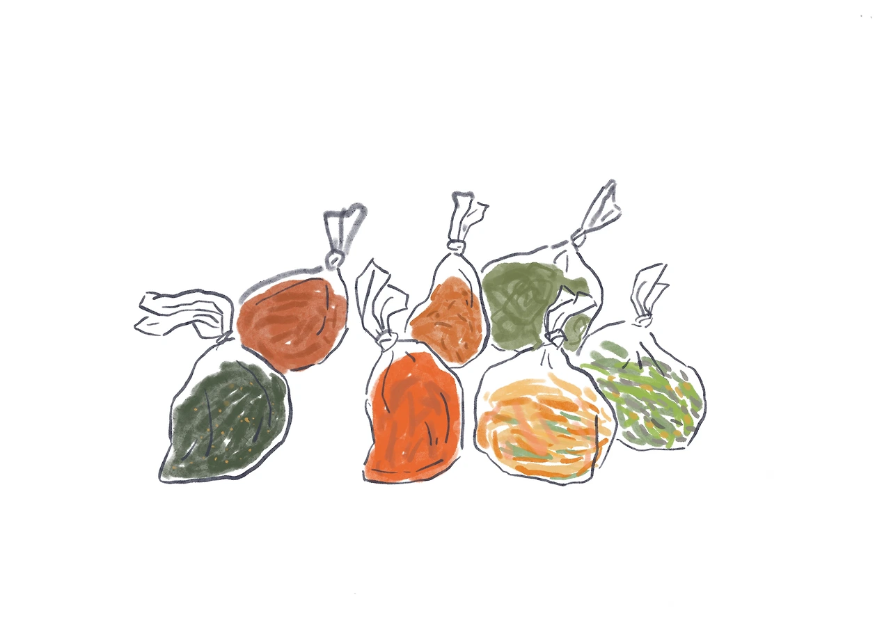 명절에는 두 종류의 인간이 있다. 음식을 하는 자와 음식을 먹는 자.누구나 예상했겠지만 나는 먹는 자. 거기에 또 바리바리 싸오는 인간.곤드레 나물, 고사리나물, 도라지 무침, 더덕구이, 오징어채 볶음, 꽈리고추 멸치 볶음, 무나물은 일단 봉지에 물김치, 달랭이 김치, 코다리 조림, 전이랑 사과, 배, 천혜향, 만두, 가래떡, 양파 피클, 식혜를엄마랑 둥이 엄마, 시어머니가 싸 주셨다.