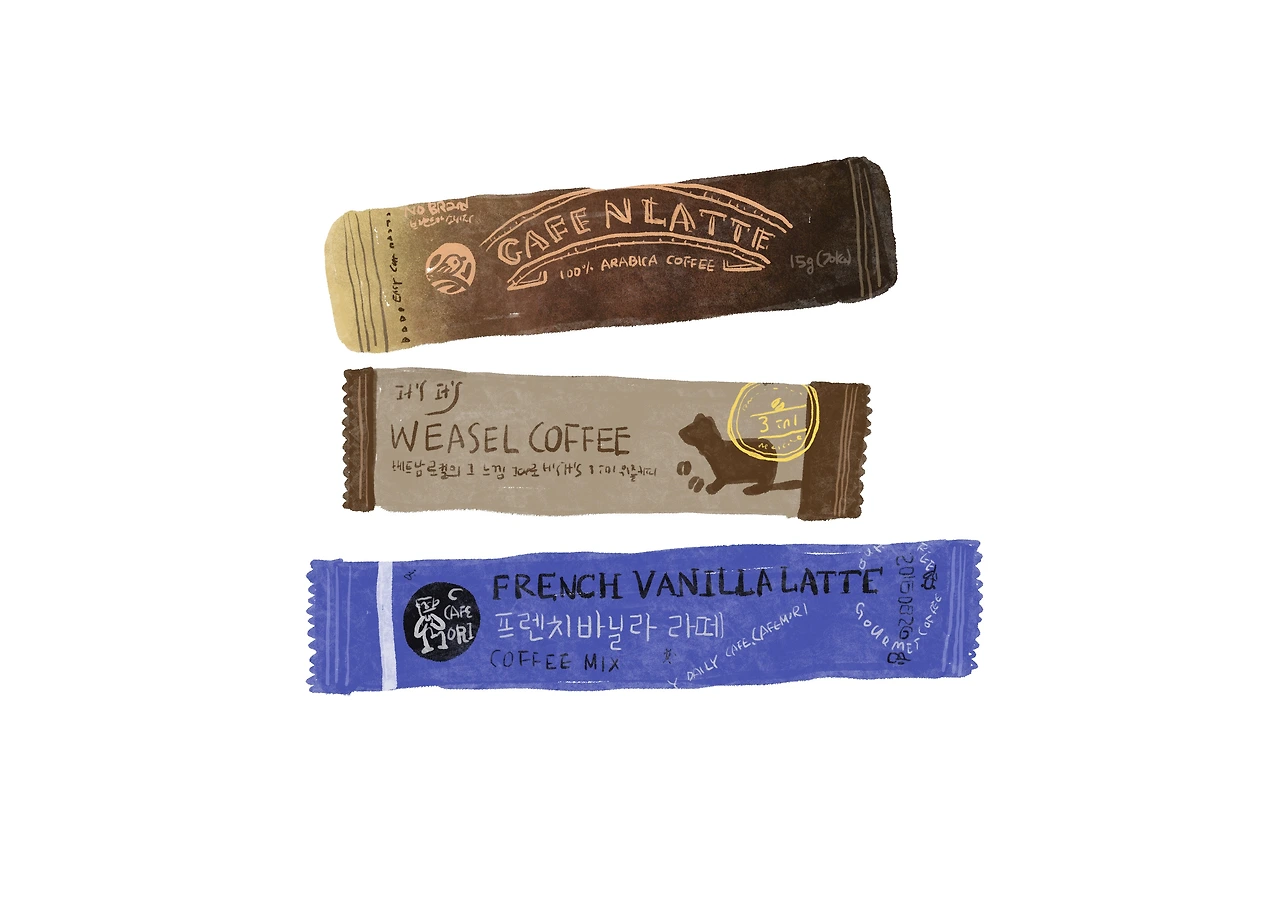 안 먹는다고 갖고 오지 말라고 해도 또 갖고 왔네.바깥양반이 회사 동료들에게 얻은 커피들을 모았다가자꾸 갖고 온다. 특이한 거라며, 새로운 거라며, 처음 보는 거라며. 마음은 고마운데요. 믹스 커피 안 먹는다니까! 제발 그냥 회사에서 너 드세요. 내일부터 도시락 가방에 하나씩 도로 싸줘야지.