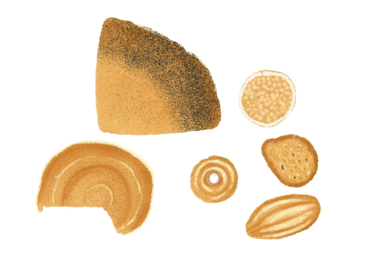 여러 나뭇잎들같기도 하고강가에서 주운 돌같기도 하다.
