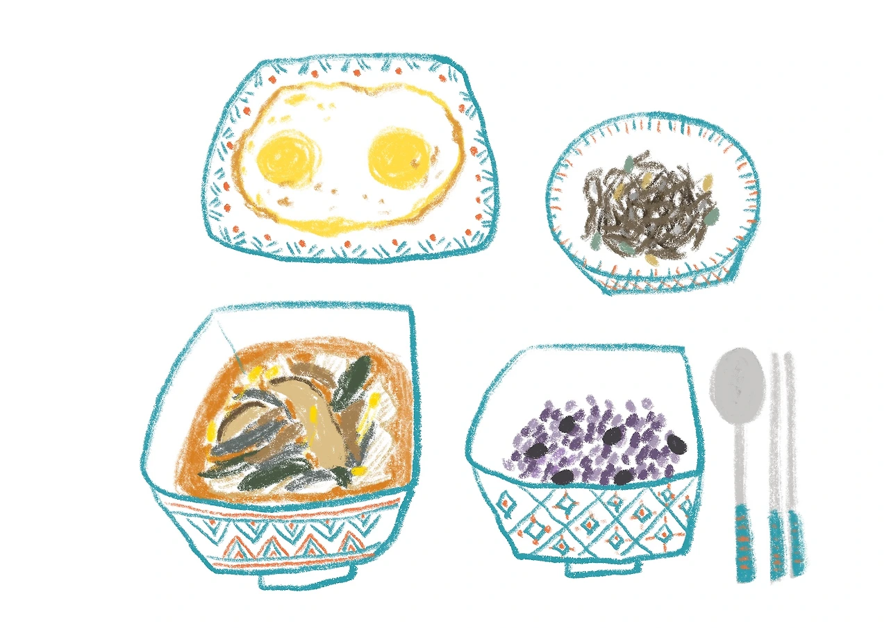 바깥양반의 저녁 메뉴는계란후라이 두 개, 엄마표 멸치볶음,