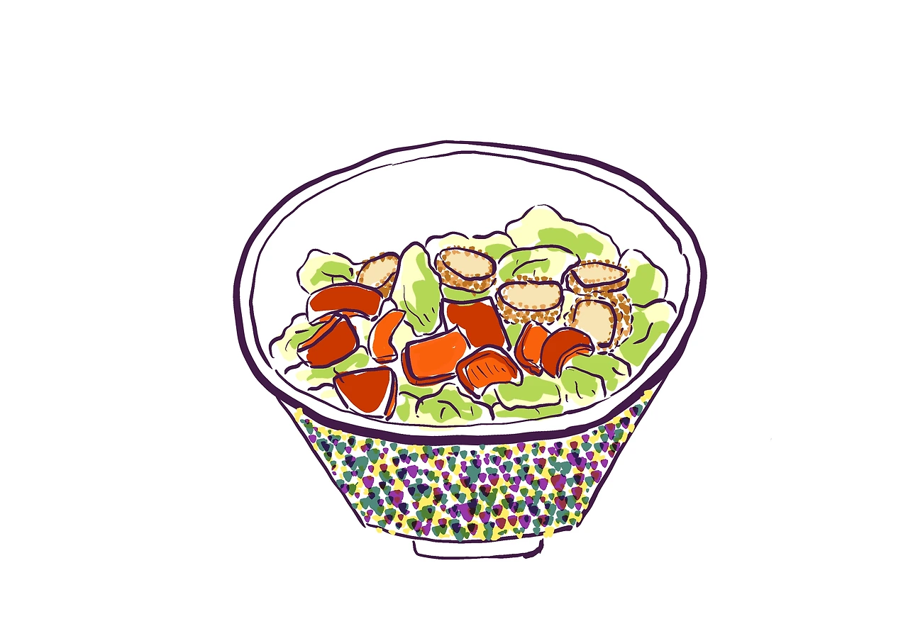 치킨 가라아케를 넣어 샐러드를 해 먹었다. 드레싱 없이도 맛있다.
