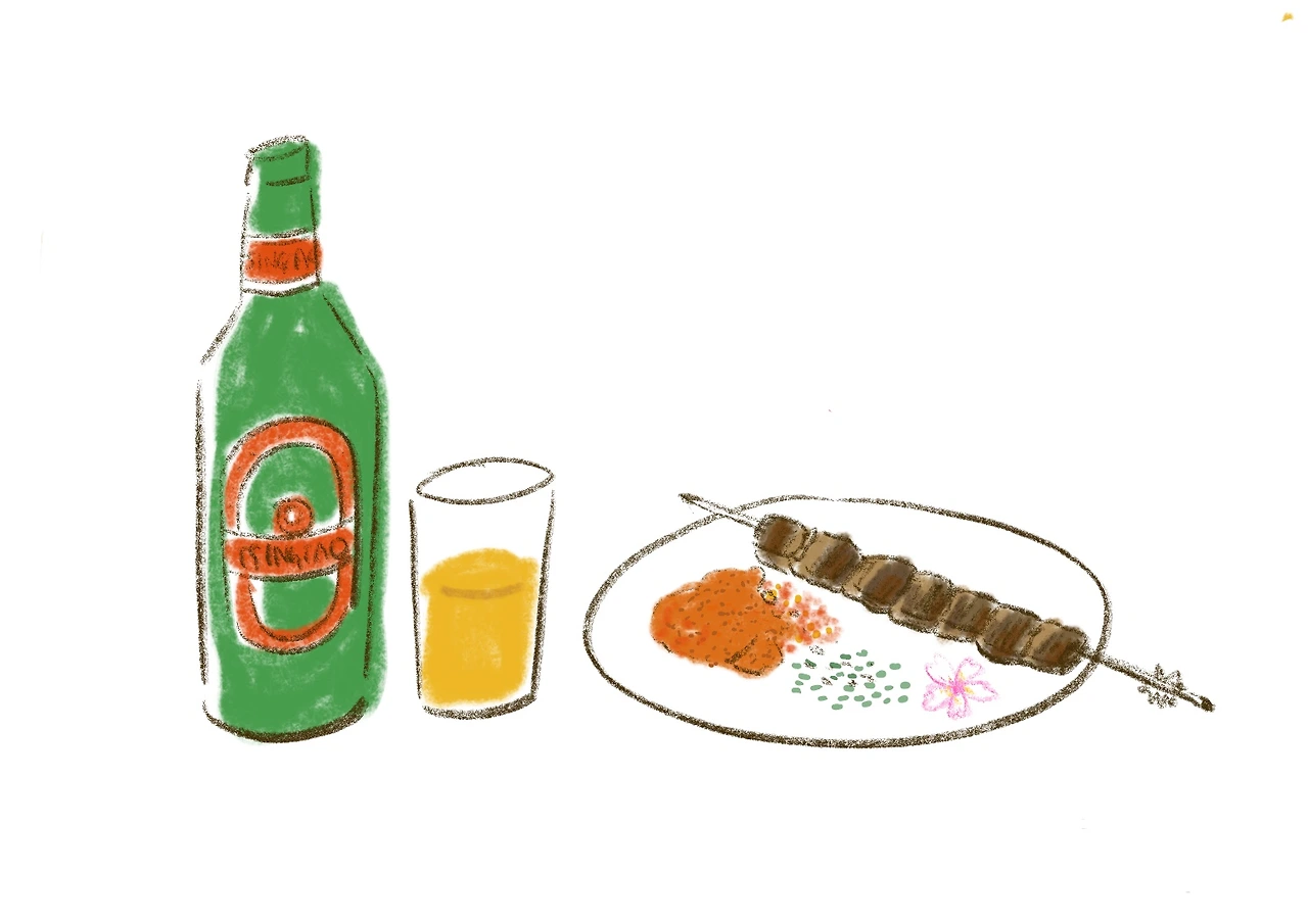 한 숨 자고 나가서양꼬치와 맥주를 마셨다.