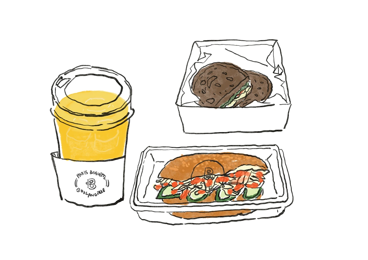 집에 오는 길에 샌드위치 두 개랑 아이스 청귤 차 사서