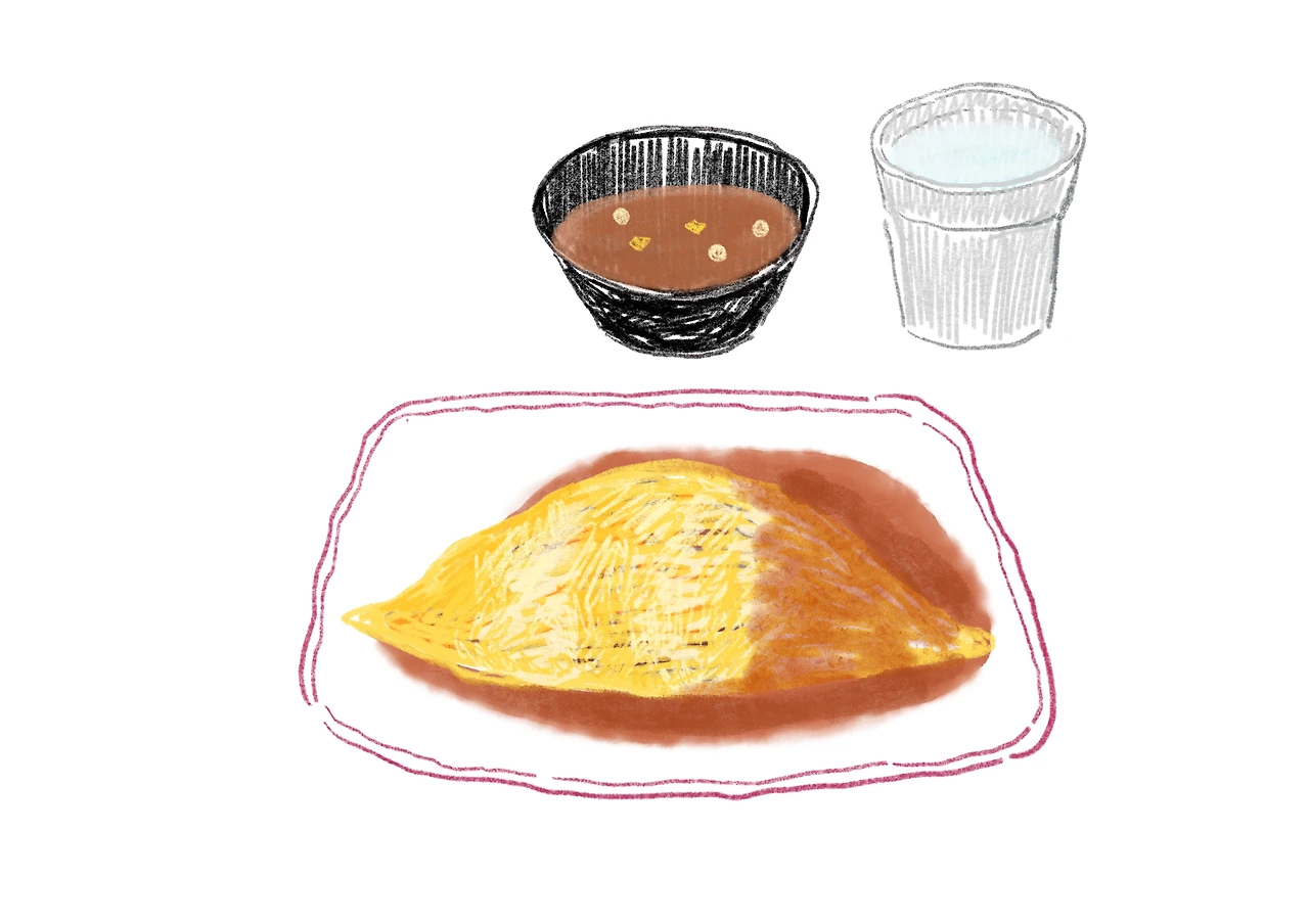 오가는 중간에 김밥집에 가서 오므라이스를 먹었는데