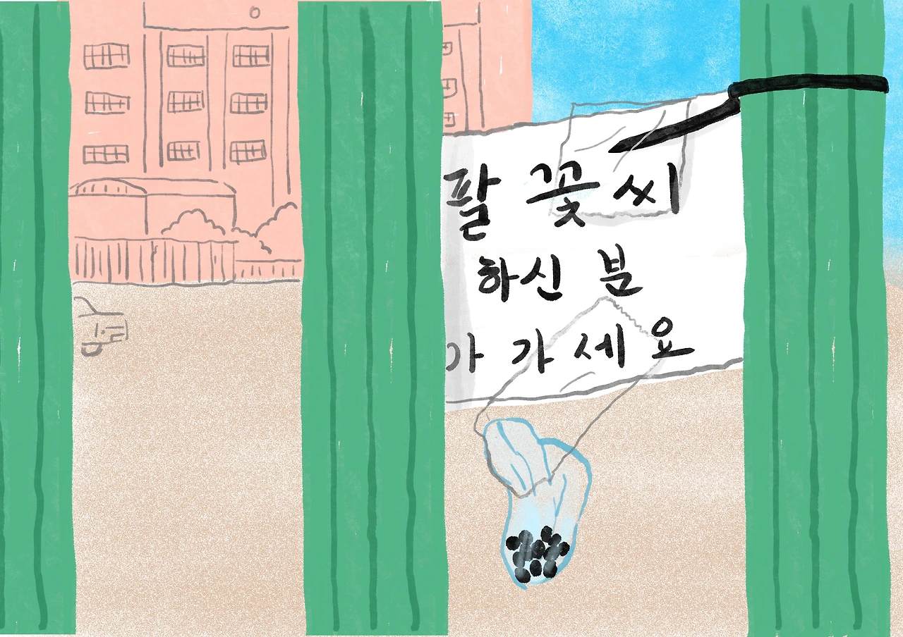 9월 1일 일기에 나팔꽃을 그렸었다.오늘 그곳을 지나는데 나팔꽃은 지고 없고쪽지가 붙어있다. 나팔꽃씨 필요하신 분가져가라고 해서 내년 봄에 베란다에 심어볼까 했는데 자세히 보니 “나팔꽃씨 부탁하신 분 찾아가세요.”였다.내년에 어느 골목 어떤 집에서 나팔꽃이환하게 빛나고 있을까? 꽃씨가 계속 이어져서 온 동네 가득 집집마다