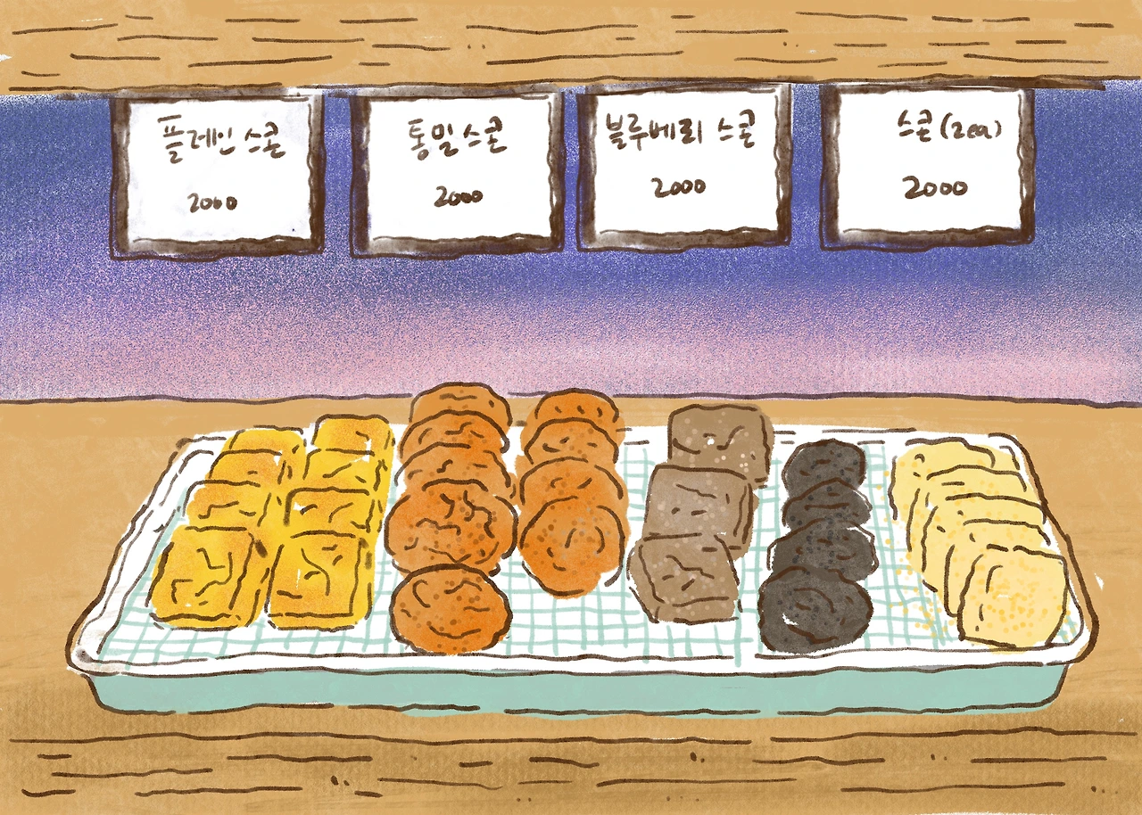 새로 찾은 빵집에는 제법여러 종류의 스콘이 있다. 비록 내가 좋아하는 아주 뻑뻑한 스콘은 아니지만 우리 동네에이런 곳이 있어서 감사할 따름이다.물 없이 스콘을 꿀떡꿀떡 먹는다.요즘 작업하고 있는 잘 풀리지 않는 원고를 삼키는 것 같다. 목이 메는 것이 스콘 때문인지 원고 때문인지 모르겠다.