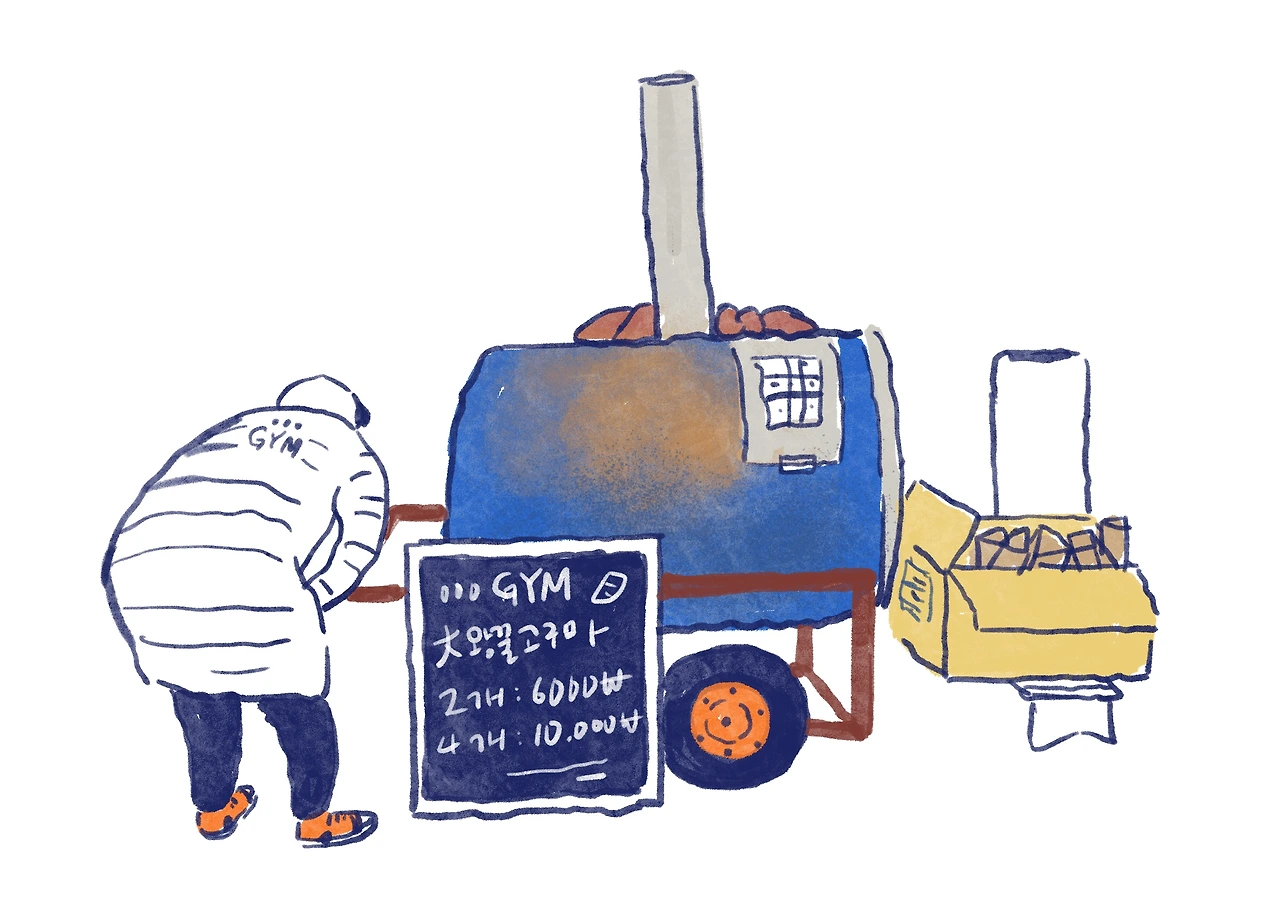 며칠 전 인터넷에서 웃픈 게시물을봤다. 코로나로 3주간 문을 닫는헬스장 관장님이 군고구마 장사를한다고 회원들에게 보낸 문자였다.우리 동네에서도 똑같은 일이 생겼다.헬스장 입구 앞에 군고구마 수레가설치되고 트레이너로 추측되는 분들이고구마를 굽고 있었다. 그 어느 때보다길고 힘든 겨울이 될 것 같다.