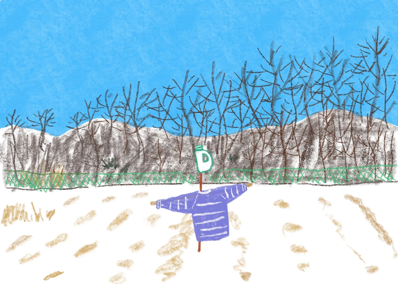 오도카니 빈 밭을 지키고 있는