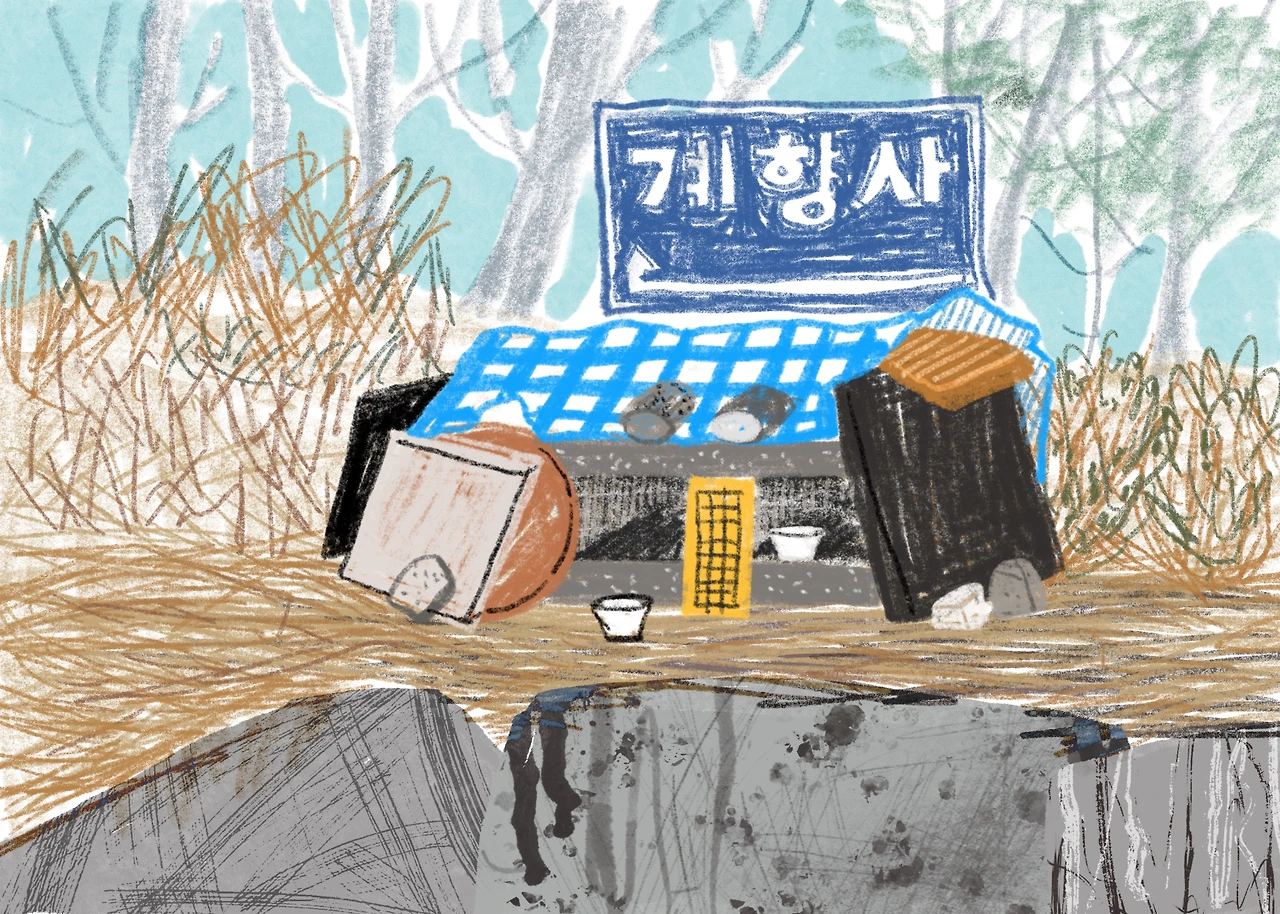 다리가 부러진 상과 판자로벽을 세우고 돗자리로 지붕을엮어서 크고 작은 돌로 눌러둔작은 집이 있다. 손재주도 좋고마음이 따뜻한 이웃을 둔 복 받은 고양이가 살고 있겠지?공교롭게 고양이집 옆에 표지판때문에 고양이 절 같다.시주라도 해야 할 것 같은데다음 산책 때 고양이님께 핫팩이라도 넣어 드려야겠다.