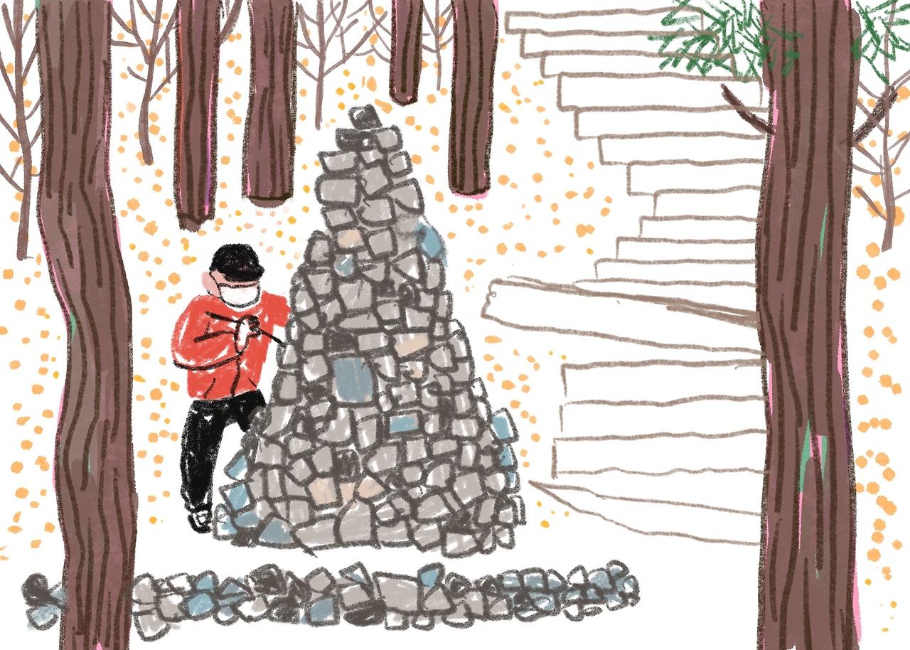 우리 집에서 출발해서 정상 찍고다시 집에 도착하면 한 시간이쪼끔 더 걸리는, 산이라고 하기에는민망하지만 새해 첫 날을 맞이해등산을 다녀왔다. 정성껏 돌탑을올리는 할아버지가 있었다. 이 커다란돌탑의 설계자 같다. 아마 매일 와서 계속 와서 만들고, 만드는 중일 거다.이 작은 산에 돌탑이 서너 개나 있다.매일 돌을 줍고 쌓는 마음으로묵묵하게 2021년을 살아보자.