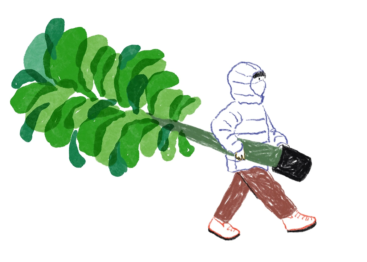 아주머니가 커다란 나무를 들고성큼성큼 걷는다. 뭔가 비현실적인이 느낌은 한겨울 푸릇푸릇한나뭇잎 때문인가 넋을 놓고멀어지는 아주머니를 바라보았다.크기 때문이었다. 엄청 큰 나무를저렇게 가뿐하게 들 리 없잖아.걷다 보니 모델하우스 주차장에서같은 나무를 발견했다. 폐관 공사로조화 화분들이 많이 버려져있었다.나도 하나 주워올걸 그랬나.