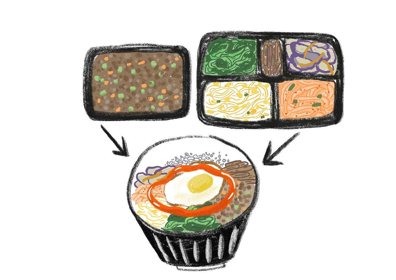 다진 소고기 야채볶음 : 3천원오색 나물 : 5천원계란 후라이 부쳐서 올리고 참기름이랑 비빔장을넣으면 꽉차고 근사한 비빔밥이 된다. 우리 집 기준으로 세 끼를 먹을 수 있다. 오늘 나의 점심, 바깥양반 저녁, 내일 또 나의 점심.비싸고 굉장한 걸 먹고 사는 것 같지는 않은데돈 벌어서 밥 먹는데 다 쓰는 것 같다. 카드 내역보면 공과금빼고 다 밥 값이다.