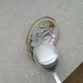 주의! - 숟가락을 밀어 넣을 때 무리하게 힘을 주시면 전복 껍데기에 손을 베일 수 있으니 조심하세요.