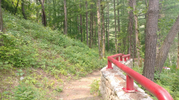 20분가량 길을 걸어 생애의 탑에 도착했다. 로미지안 가든 입구에는 세 개의 탑을 세워놓았다. 500년 이상된 삼나무로 세워진 세 개의 탑은 생애의 주기를 뜻하는 탄생(초록), 청춘(빨강), 완생(검정)을 의미한다. 탑을 지나 아라리 탑이 보였다. 정선아리랑을 재해석한 글귀는 상당히 인상적이었다.