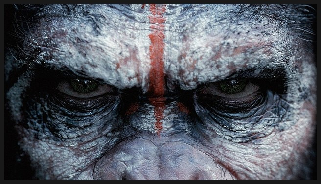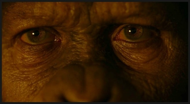 영화는 카리스마 있는 시저의 눈을 정면 클로즈업으로 시작됩니다.