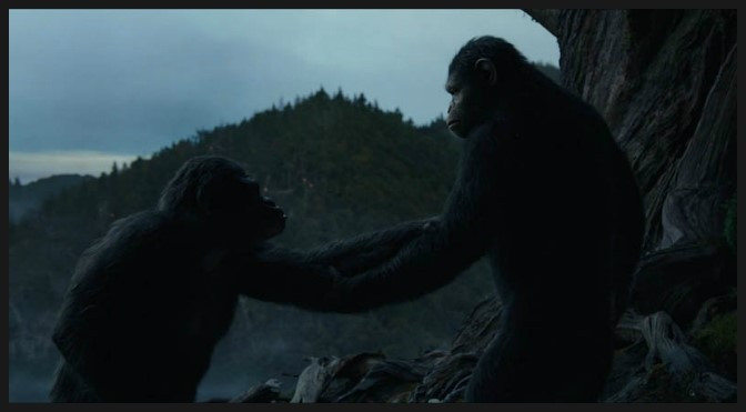앞으로 인류와 유인원의 전쟁을 암시하고 있습니다.