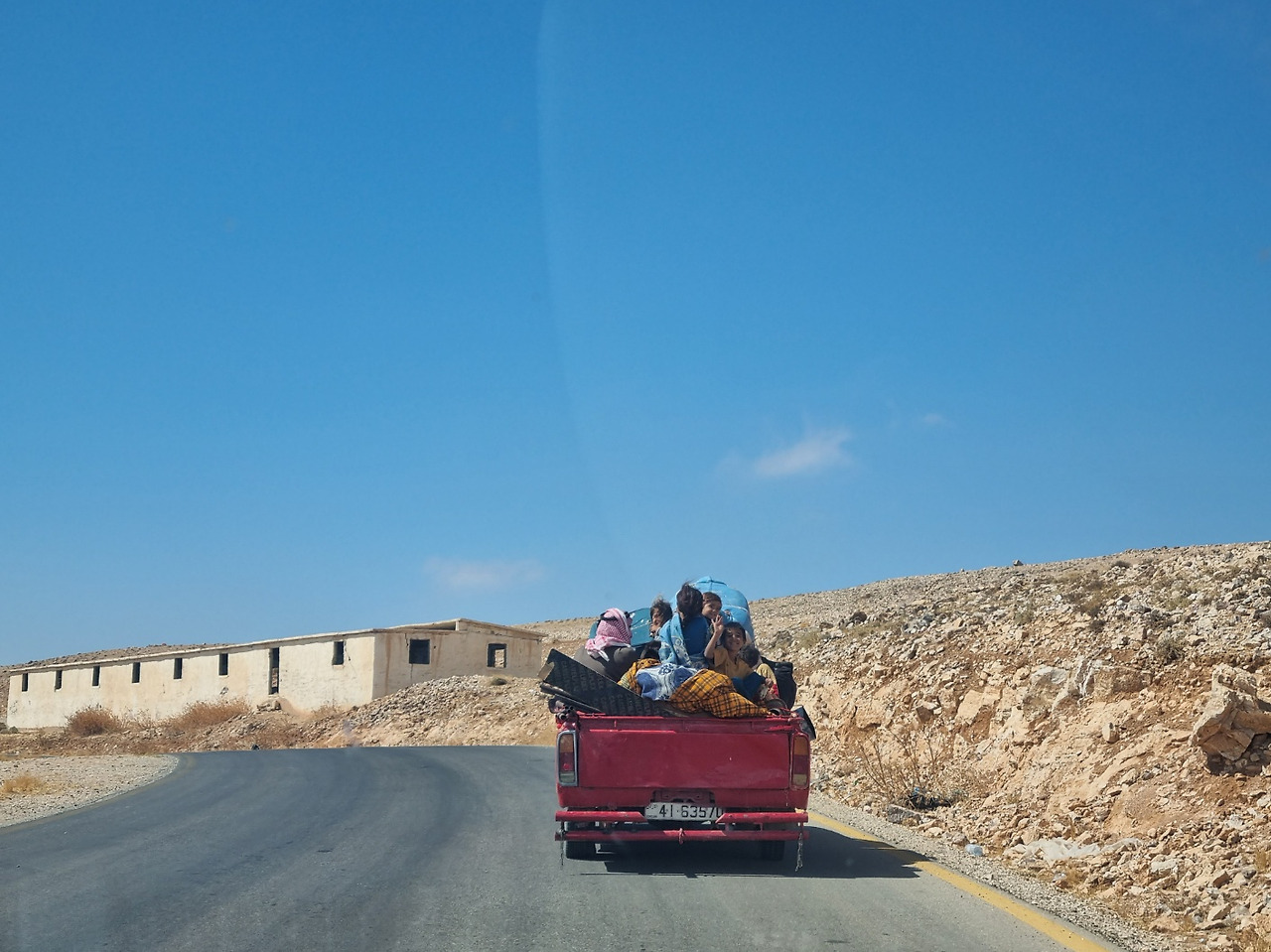 오래된 차에 아이들이 가득 타있는 모습. 버스 등 대중교통이 제대로 안 돼 있는 요르단에선 오래된 차라도 상관없다. 물건을 실을 수 있고 사람들이 탈 수만 있다면.