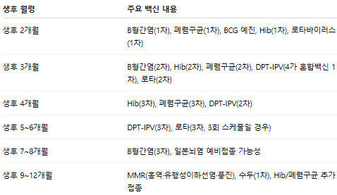 ※ BCG는 일부 지역에서 생후 5개월 전후 단체접종으로 지정되며,