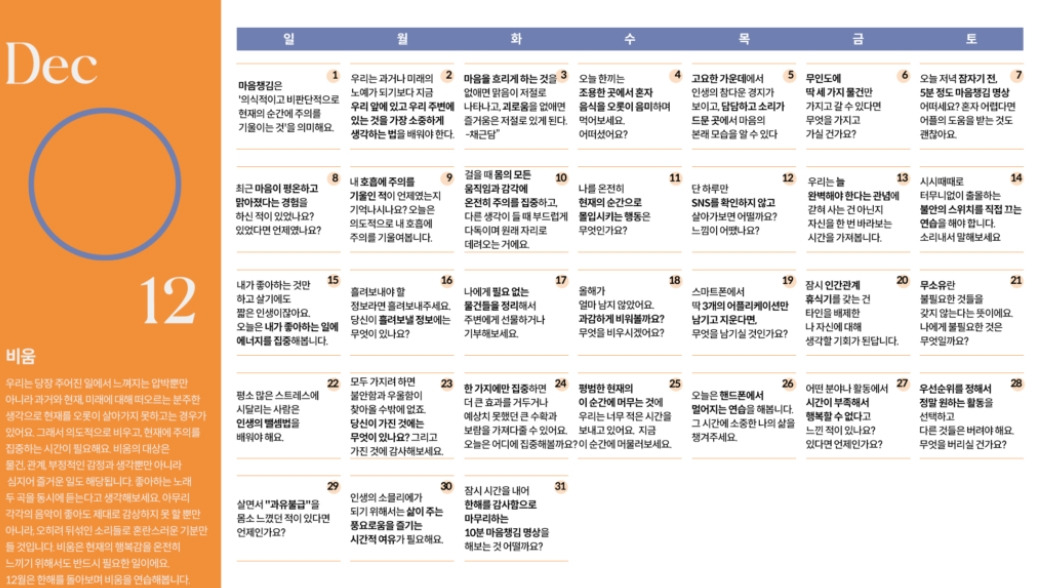 12월은 한해를 돌아보며 비움을 연습해봅시다.