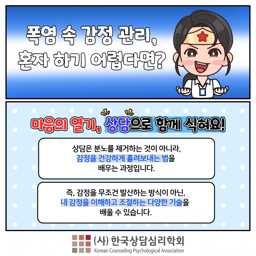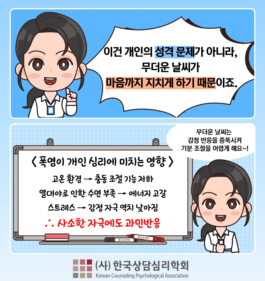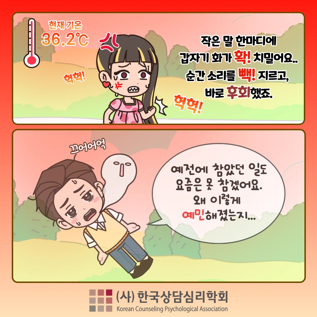 Q. 요즘 너무 예민한데, 더위 때문일까요? 작은 말 한 마디에 갑자기 화가 확! 치밀어요.순간 소리를 빽! 지르고 바로 후회했죠.