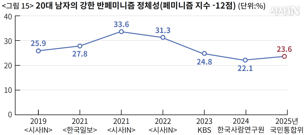 2019년 조사는 <시사IN〉의 심층 여론조사다. 7년이 지났지만 이 시리즈를 기억하는 독자가 적지 않을 것이다. 이 기획은 “이제 남성이 차별받는 성이다”라는 청년 남성들의 마이너리티 자의식을 처음으로 대중에 각인시켰다.