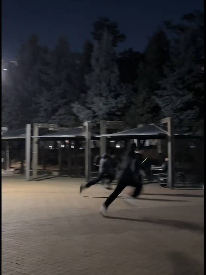 "도둑은 파란 청 테이프를 등에 붙이고, 경찰은 야광봉을 들기로 해서 괜찮았는데, 너무 빨라서 따라가기가 힘들었어. 난 도둑 한번, 경찰 한번 했는데 숨이 찼어."