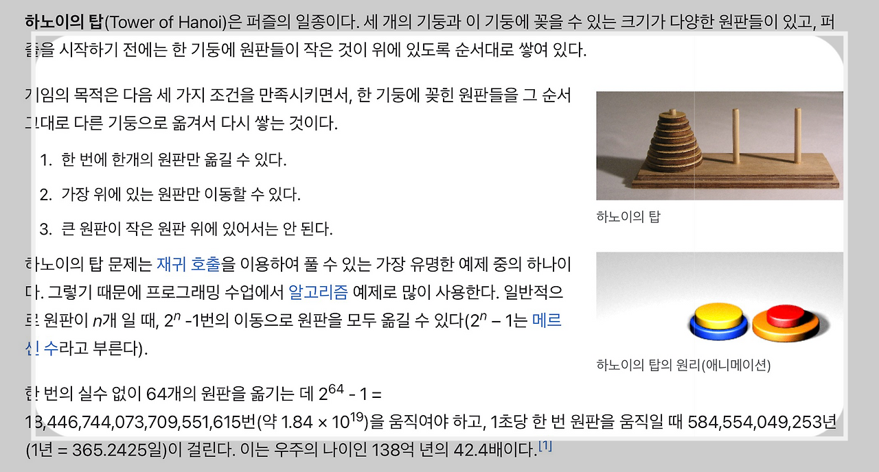 원반을 목표 기둥으로 옮기려면, 한 수 뒤로 물러나야 하는 순간이 반드시 옵니다. 목표에서 멀어지는 것처럼 보이는 그 이동이 없으면, 퍼즐은 절대 풀리지 않습니다.