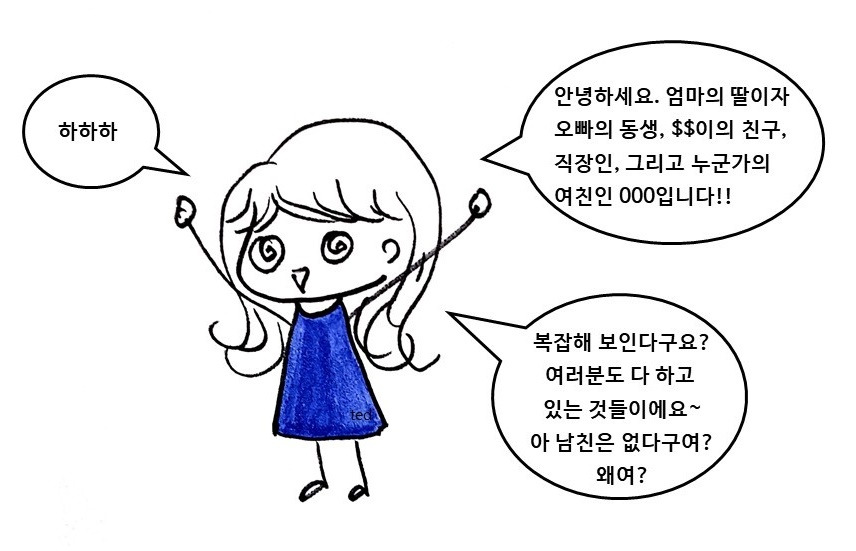 엄마와 아빠의 딸, 동생이나 언니, 형 또는 친구와