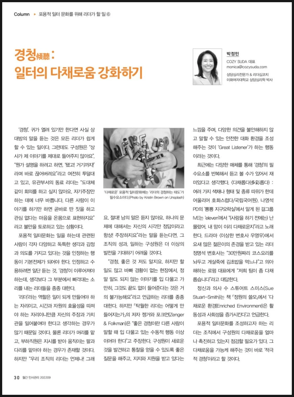 경청 : 일터의 다채로움을 강화하기 / 출처 : 월간 인사관리(2022.09)