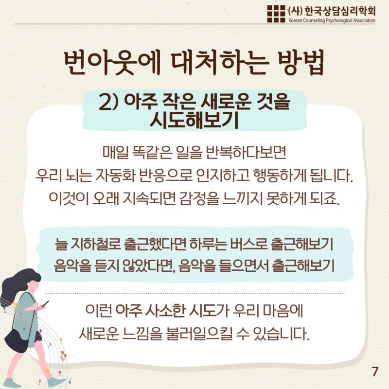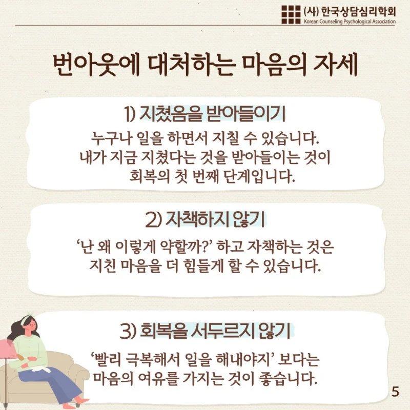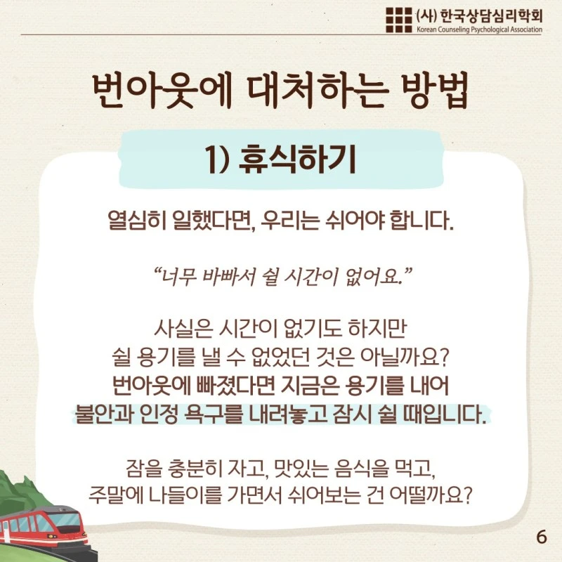 아래 내용을 참고하시어 의도적으로 멈추고 온전히 쉬어 보는 경험을 해보시기 바랍니다.