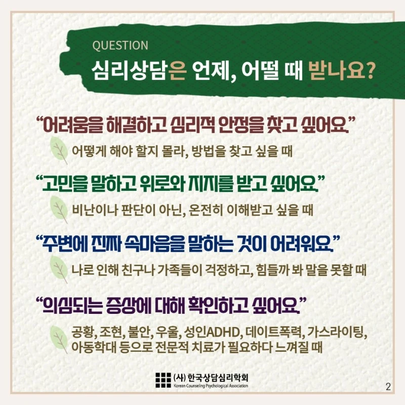 2. 심리상담을 받으면 문제있는 사람인가요?