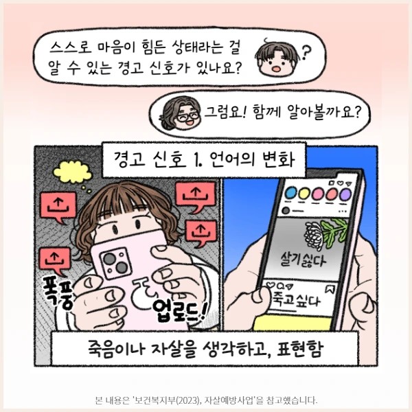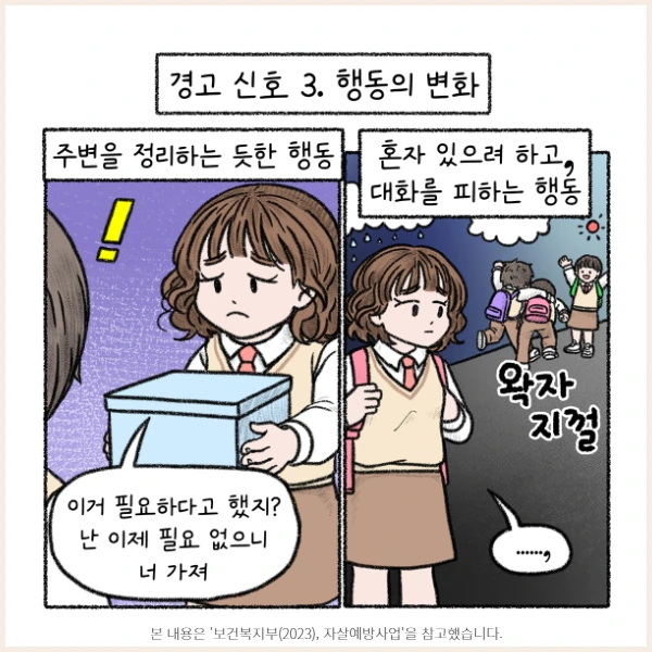 다음과 같은 '경고의 신호'를 잘 알아차려 친구들의 게이트키퍼가 되어주세요!