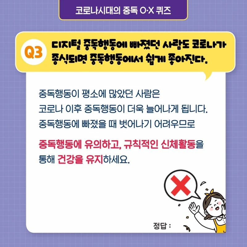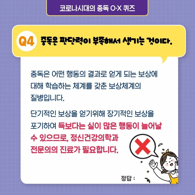 자, 여러분 :) OX퀴즈를 통해 중독의 영향을 알아보았는데 어떤가요?