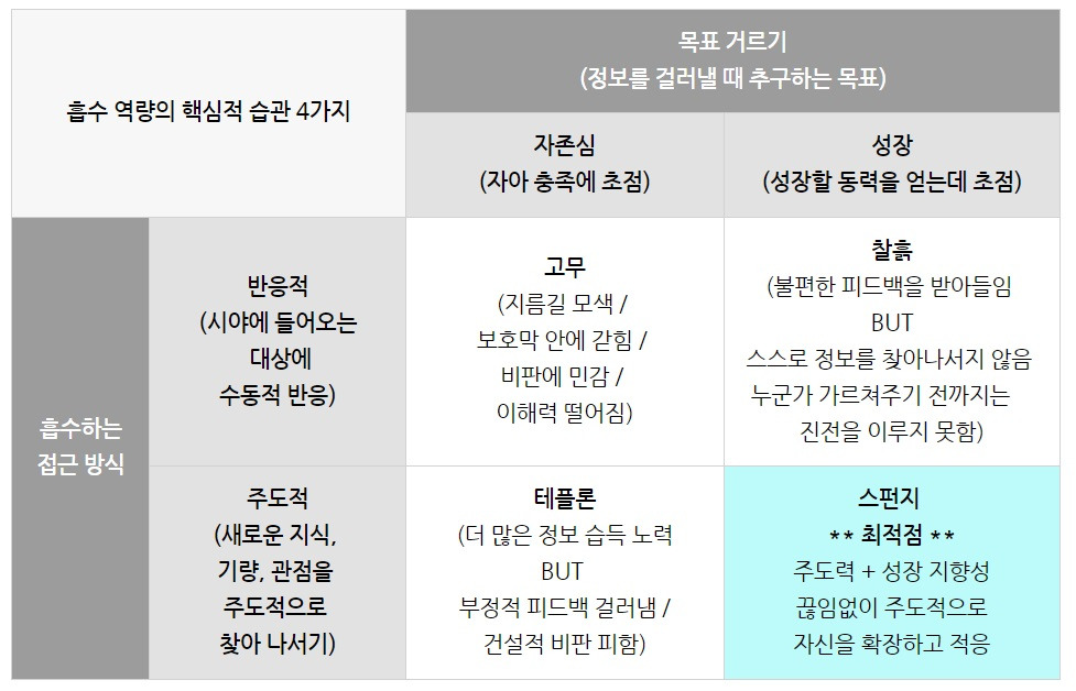 성장하는 좋은 스펀지가 되는 비결 : 어떤 정보를 흡수하고 어떤 정보를 걸러낼지 판단하는 역량을 길러야