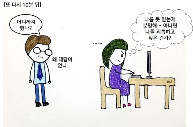 여기서 잠깐 이 상사의 속마음 한 번 볼까요?