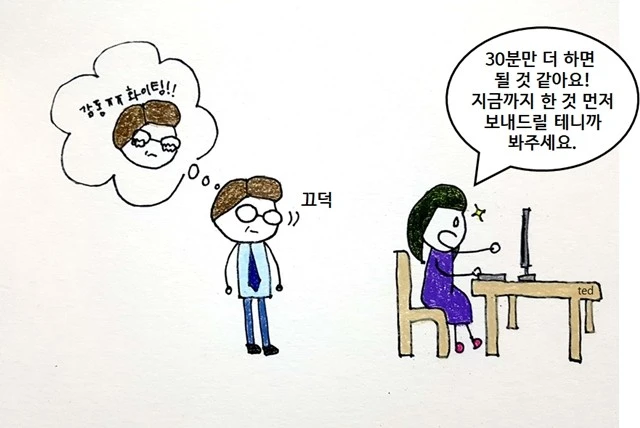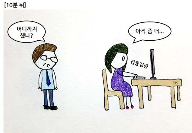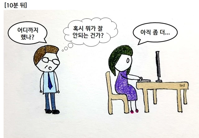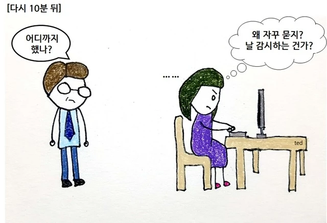 저 모습 보기 싫어서 부하직원이 어떻게든 일을 빨리 끝내려고 하는 효과가 있긴 하겠네요