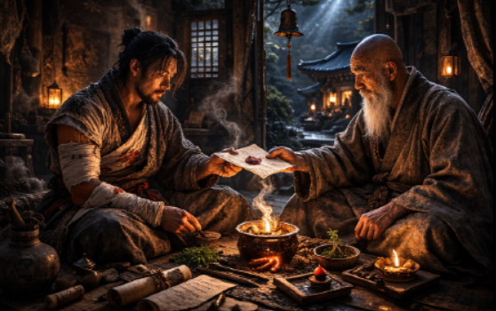 암자 안에는 약초 끓는 냄새가 옅게 퍼져 있었다.