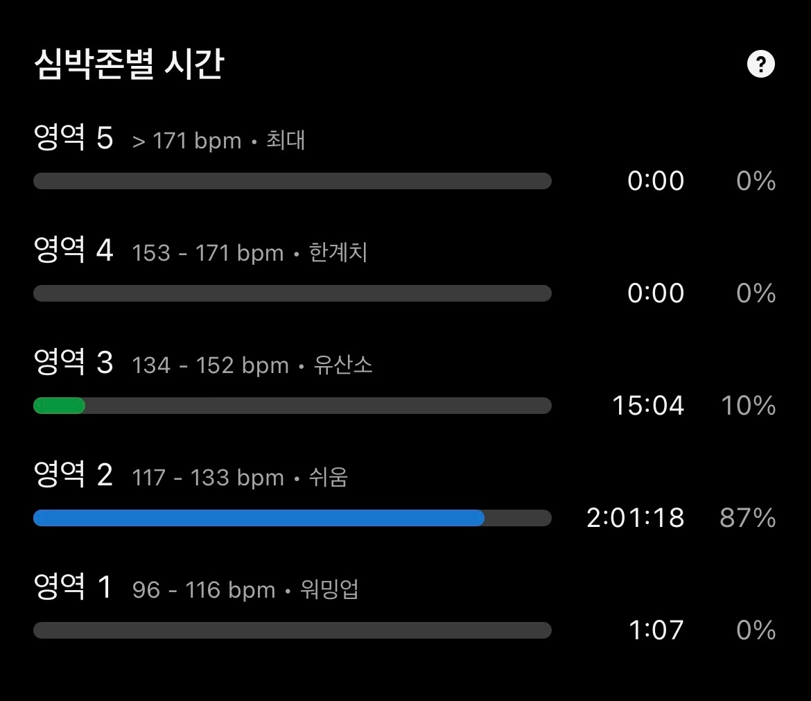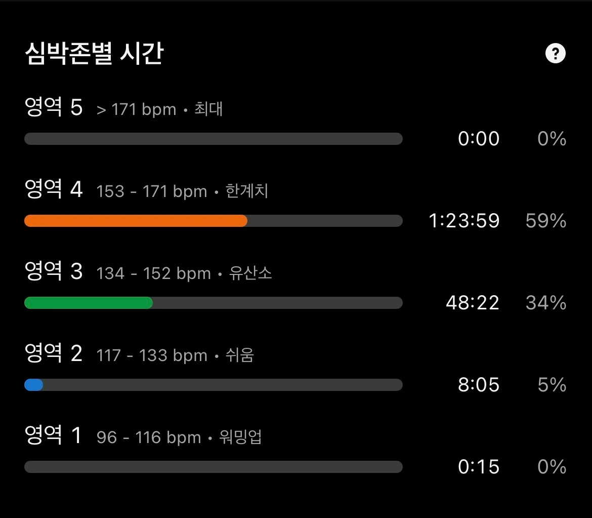 나는 아주 느리게, 거의 총총걸음에 가깝게 달리며 케이던스를 끌어올렸다. 동시에 심박수를 수시로 확인하면서 Zone 2 범위를 벗어나지 않도록 신경 썼다. 심박수는 조금만 방심해도 금세 기준선을 넘어섰고, 나도 모르게 빨라지는 페이스를 붙잡아 두는 일이 훈련의 핵심이 되었다.