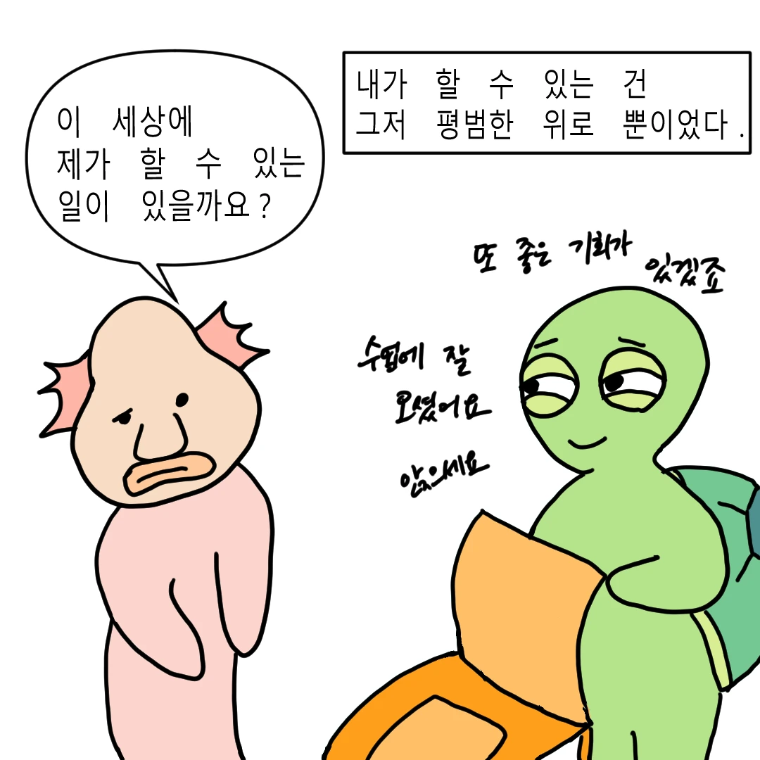 인스타에 청년도전지원사업 홍보용으로 야심 차게 디지털드로잉을 배워봤는데, 저게 처음 그린 4컷 만화이자 마지막이 된...