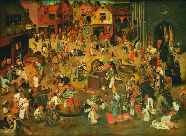 이 그림은 사육제(카니발)와 사순절이 한 광장에서 ‘전투’하는 장면을 통해 인간의 욕망과 절제 사이의 갈등을 풍자한 그림이라 한다.