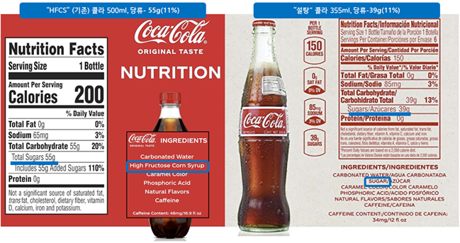 <자료> HFCS콜라와 설탕콜라의 당류 함량