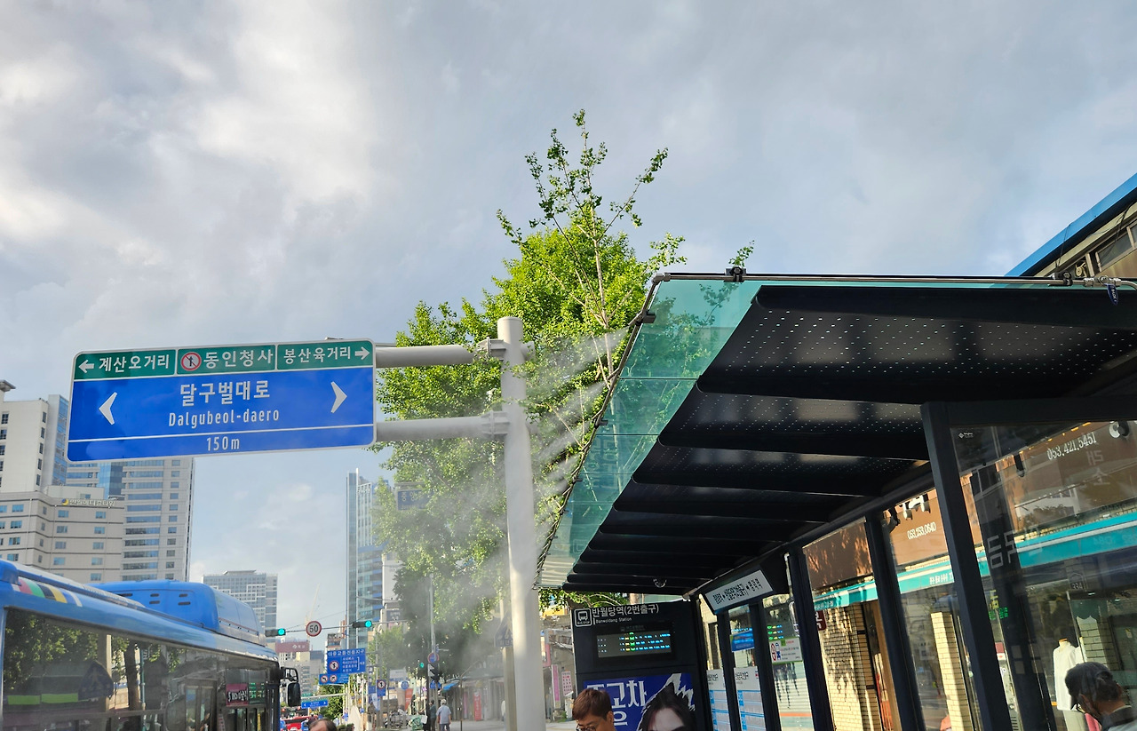 대구에서는 버스정류장에서 물을 뿌려준다..!